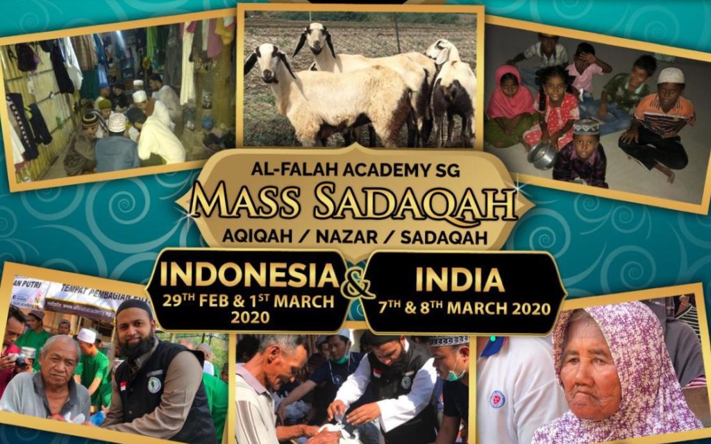 This is Mass Sadaqah Indonesia & India 2020 performed by Al Falah Academy Singapore. It was supported and contributed by good-hearted Singaporeans where we managed to feed around 900 underprivileged families in India and 725 families in Indonesia. The event was concluded with Khatamul Quran & Dua for all the participants.
